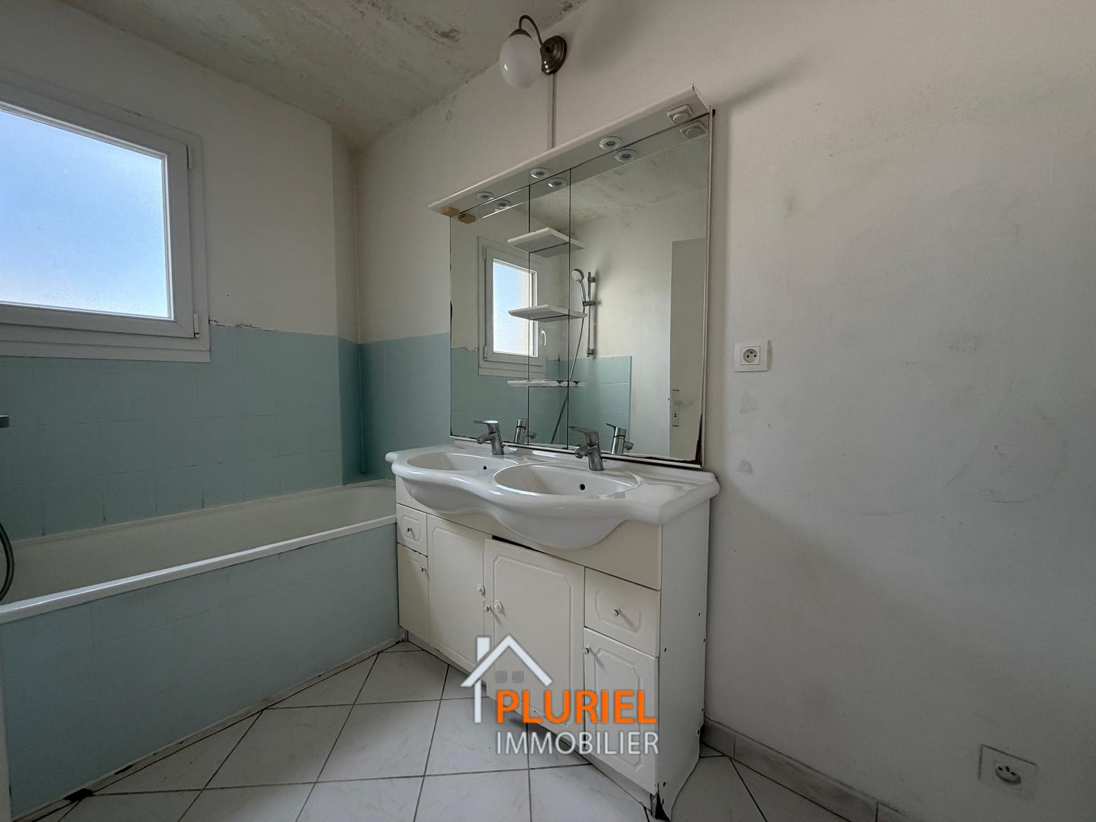 - Une salle de bains avec baignoire