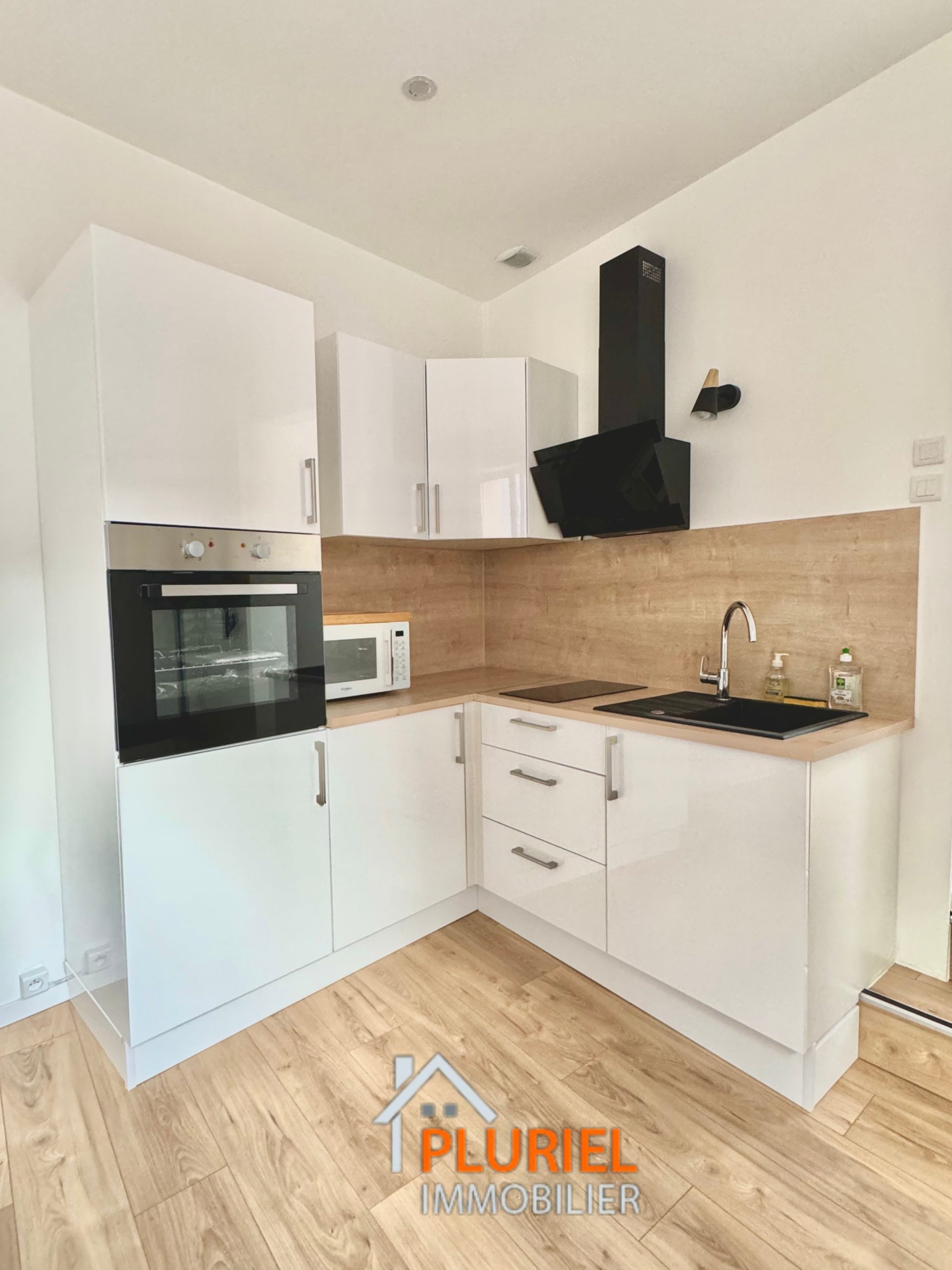 • Une cuisine américaine meublée et équipée (plaques de cuisson, hotte et four)
