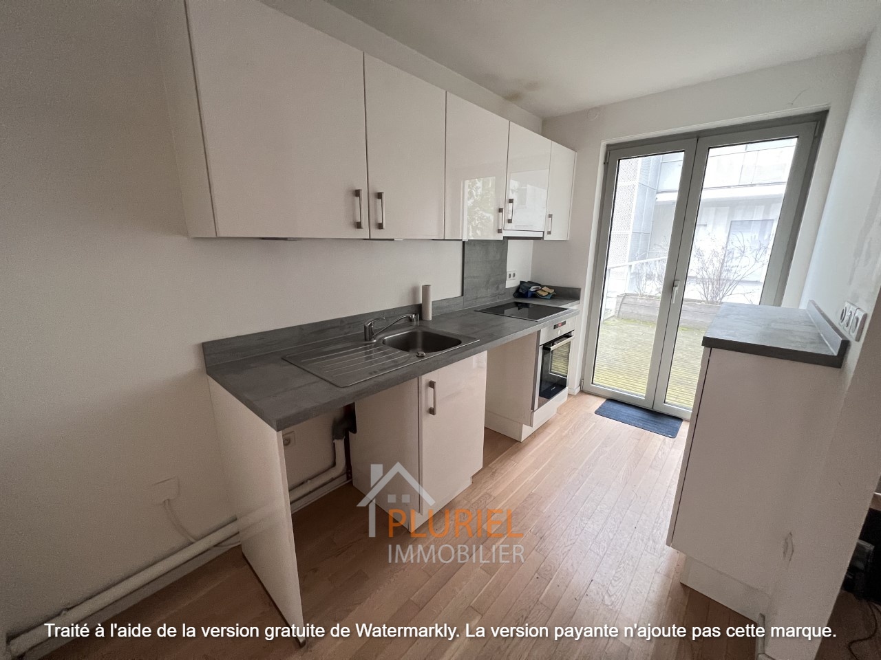 Une cuisine américaine meublée et équipée (plaques de cuisson, hotte, four)